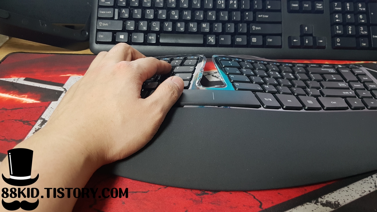 그렇지만 이런 부분이 문제가 될지라도 인체공학적으로 만들어진 이 키보드의 모양이 내 팔을 너무 편하게 만들어 주기 때문에 어느정도 커버가 된다.